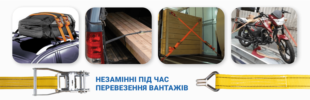 Важливо врахувати! Якщо вантаж великогабаритний або дуже важкий, швидкість руху висока, а дорога складна, можливо, знадобиться використання кількох ременів стяжок. Якщо Ви не впевнені у правильному виборі, завжди краще проконсультуватися з професіоналами або постачальниками, які можуть надати рекомендації відповідно до конкретних потреб і умов перевезення.